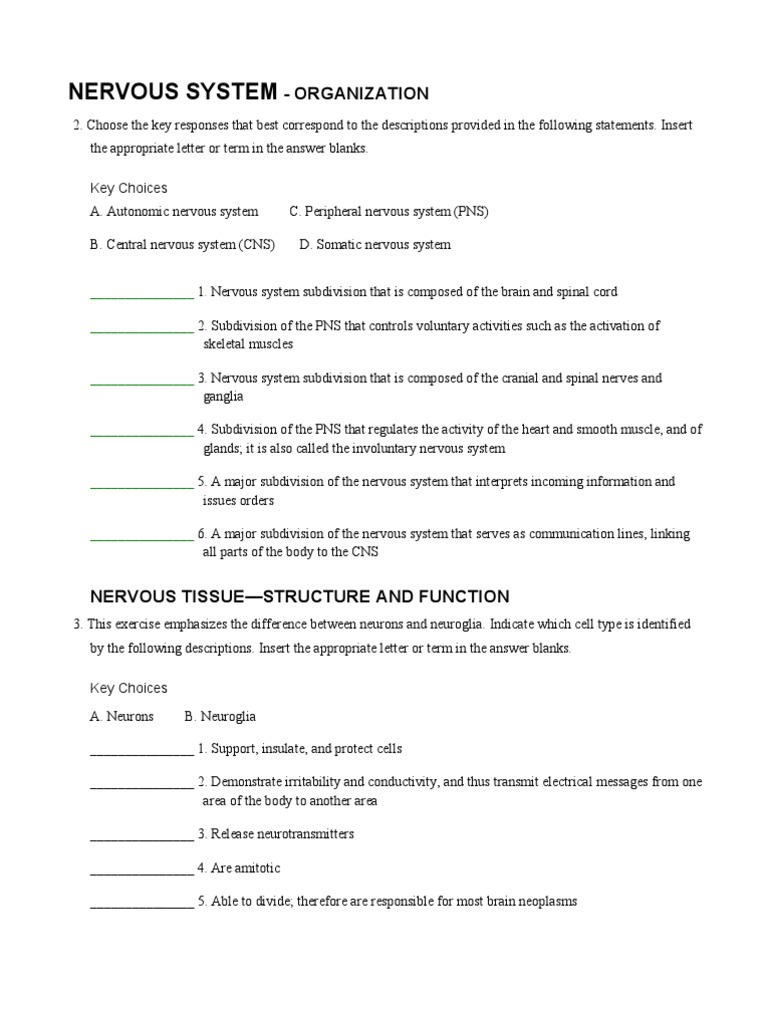 Nervous System Worksheet Answer Key - 15 - Nervous System Worksheet Answer Key.pdf - Name Block ... - Of the central nervous system cns) or the peripheral nervous system.
